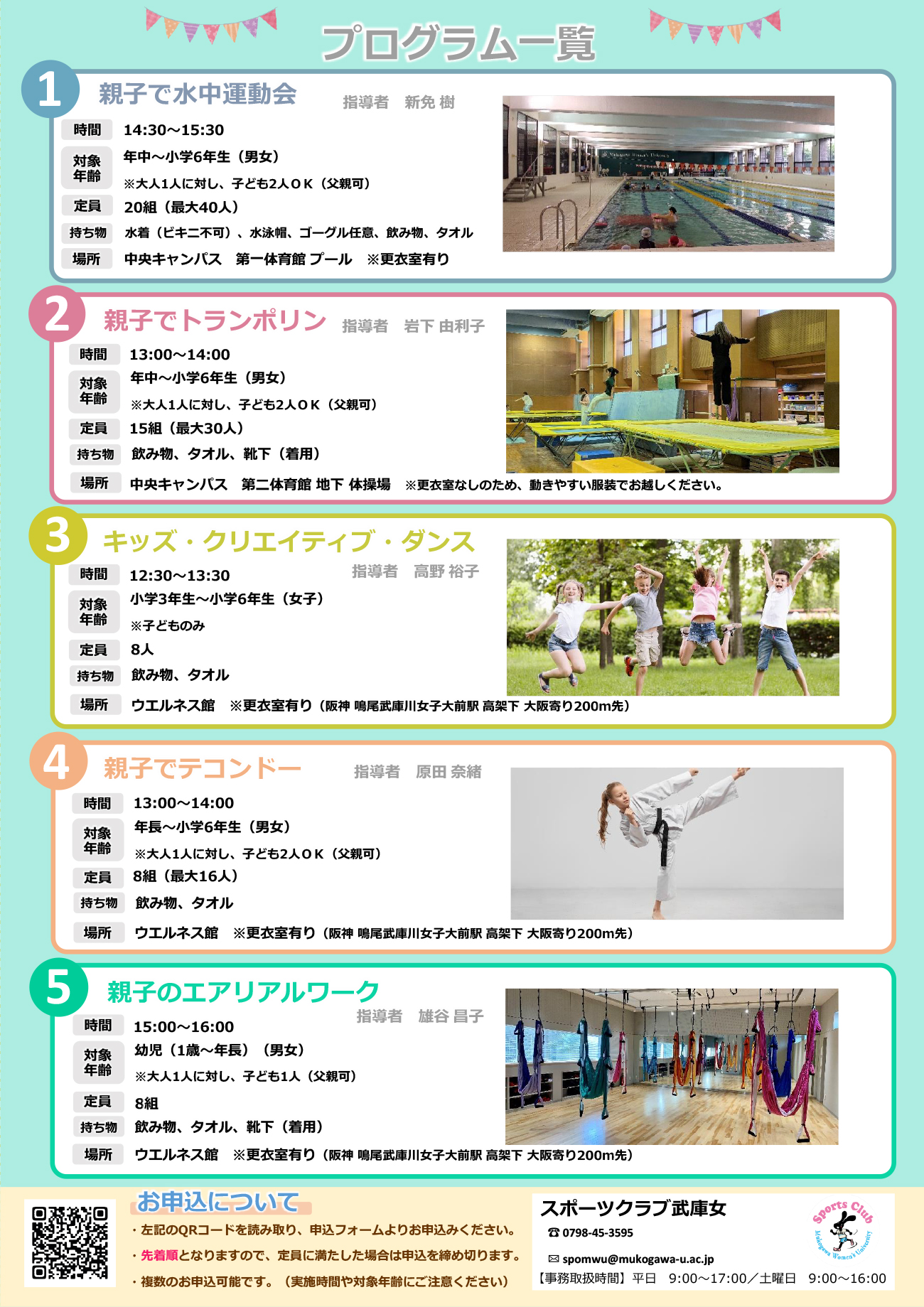 プログラムを参考に実施時間や対象年齢等を確認しぜひお申込みください!