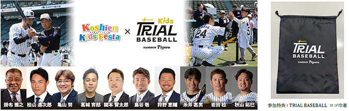 また、阪神甲子園球場のグラウンド内では阪神タイガースOB会 会長の掛布雅之氏をはじめとする豪華メンバーが集結し、これから野球を始める、始めてみたいと思っている野球初心者のお子さまを対象とした野球教室「甲子園トライアルベースボール」も開かれます。