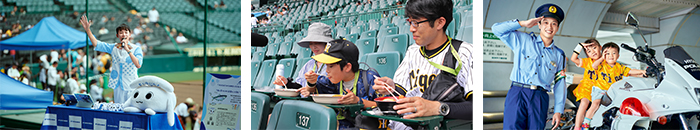 また、大人気の警察・消防車両や、グラウンド整備車両と記念撮影が行える実車展示のほか、オリジナル記念乗車証がもらえる「ミニ阪神電車」の乗車体験が出展します。※車両展示は緊急事態などの都合により、中止・中断する場合があります。