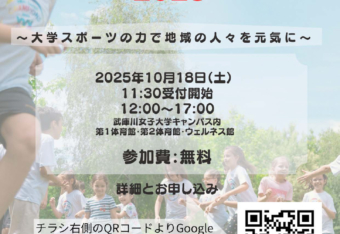 地域の皆さまと学生がスポーツを通じて交流する「武庫川女子大学スポーツフェスティバル2025」を10月18日(土)に開催します。普段は、なかなか体験できない「テコンドー」「トランポリン」「エアリアルヨガ」のほか、プールでゲームを楽しむ「親子で…
